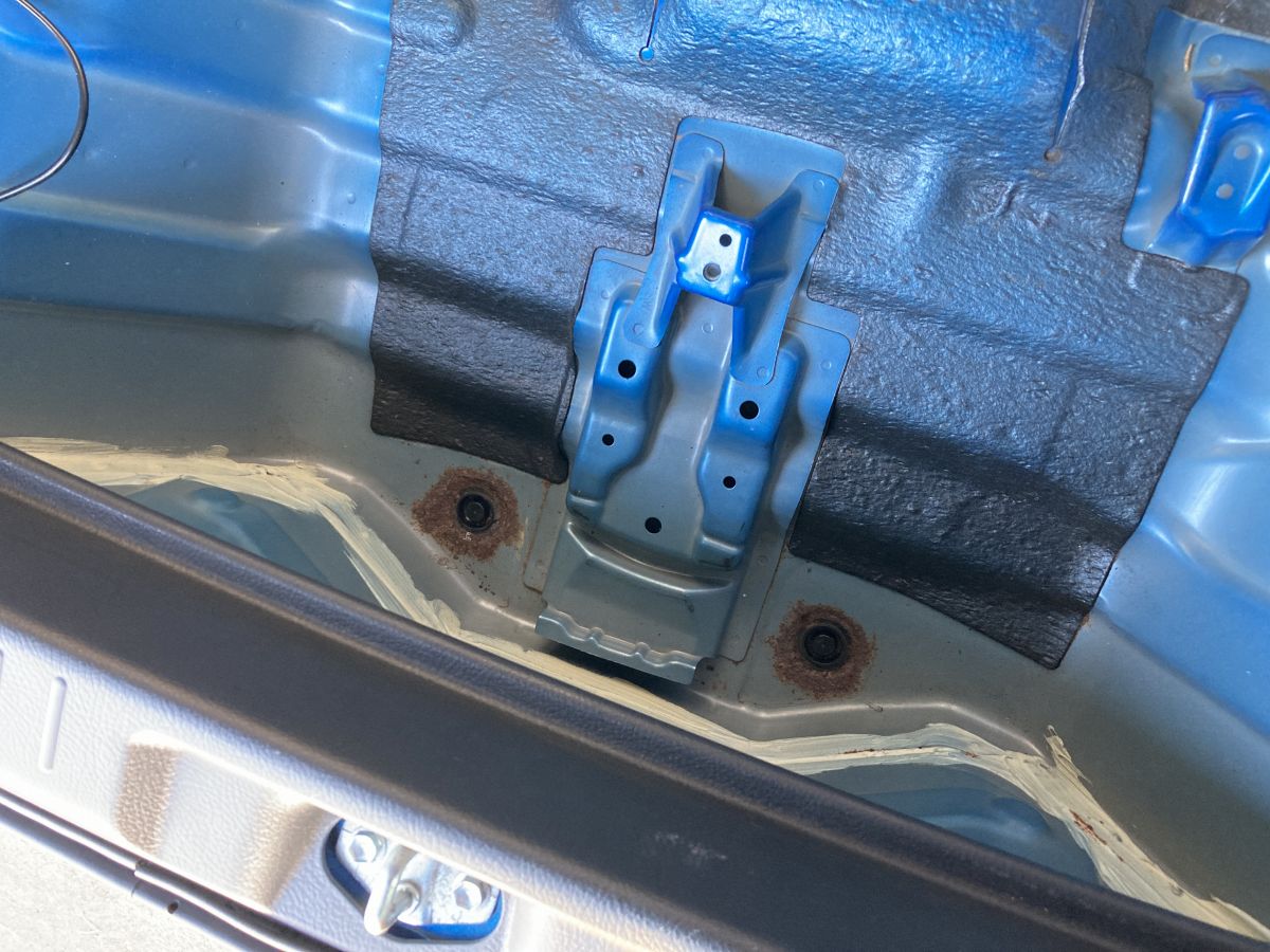 スペアタイヤハウス内のホールキャップ穴のサビ