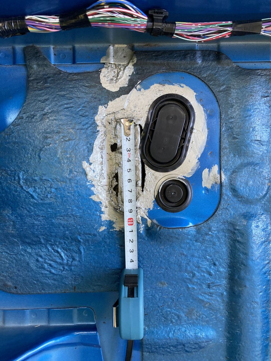 ※ タイヤハウスのサビを修復する場合は、面倒ですが詰め物を取り出してください。取り出さないで外側からグラインダーを使うと発火の恐れがあります。