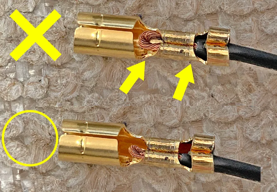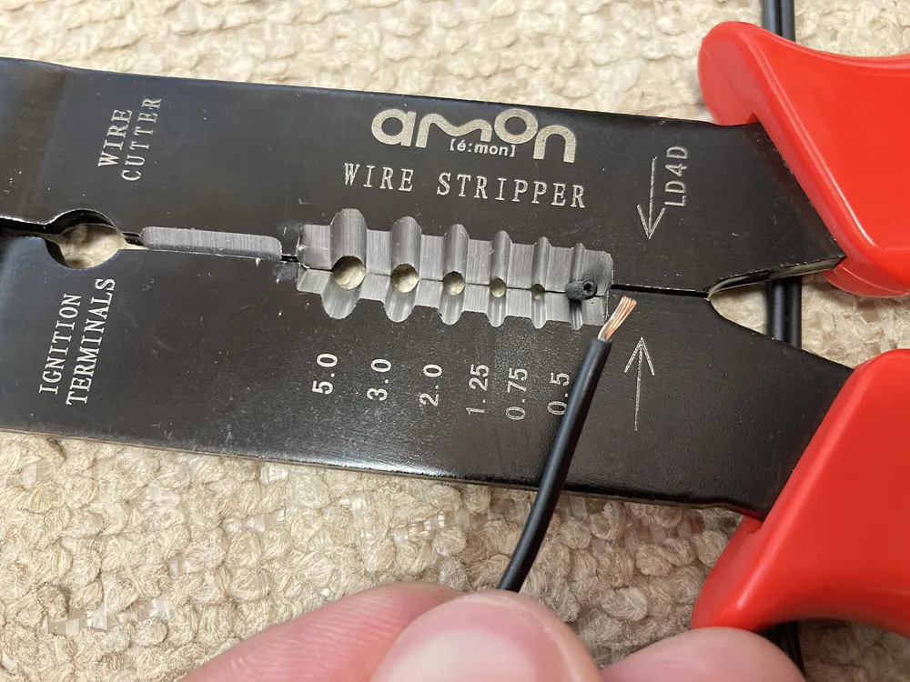 後入れスリーブだと、先にコードとギボシをカシメちゃってもOK。後入れできます。