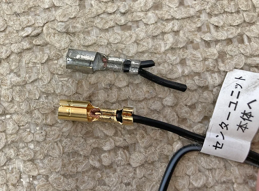 新しいコネクタとギボシ端子をカシメる