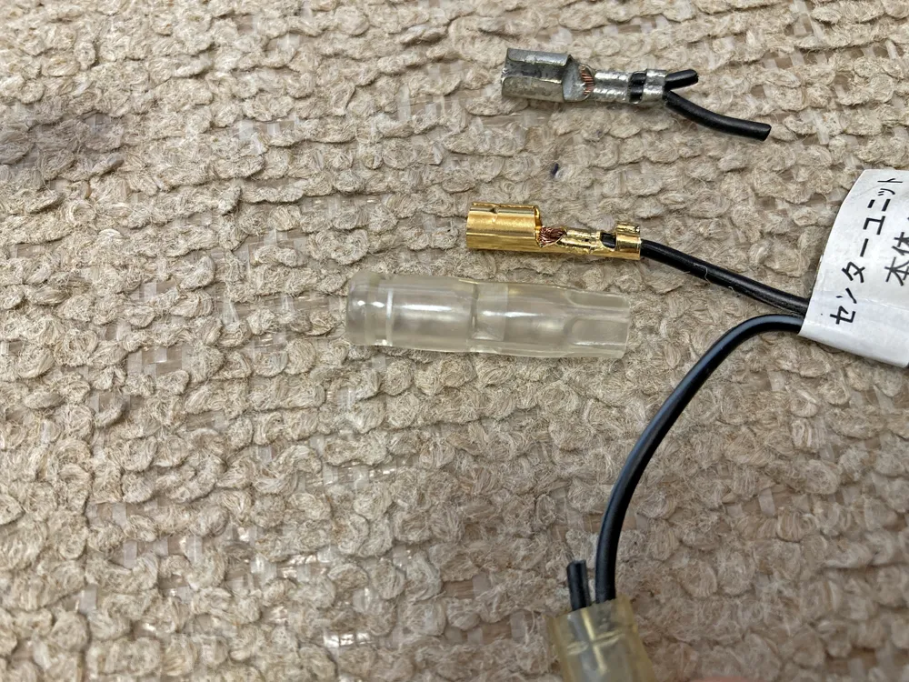 あれ?コネクタはありますがコネクタ接続ではなく「エレクトロタップ(赤)」で簡易的に接続していますね。うーむ。なんか嫌だ。(14年前の自分が犯人)